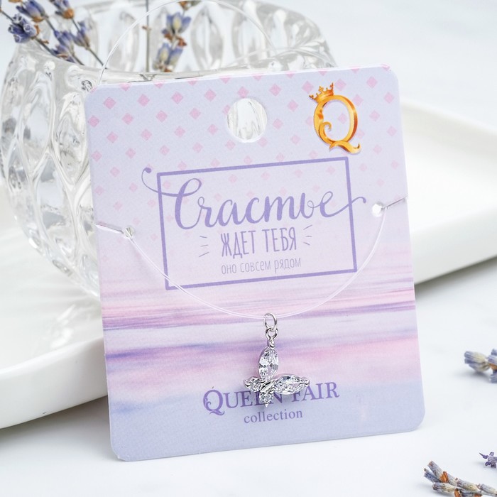 Кулон на леске«Бабочка», цвет белый в серебре, 30 см