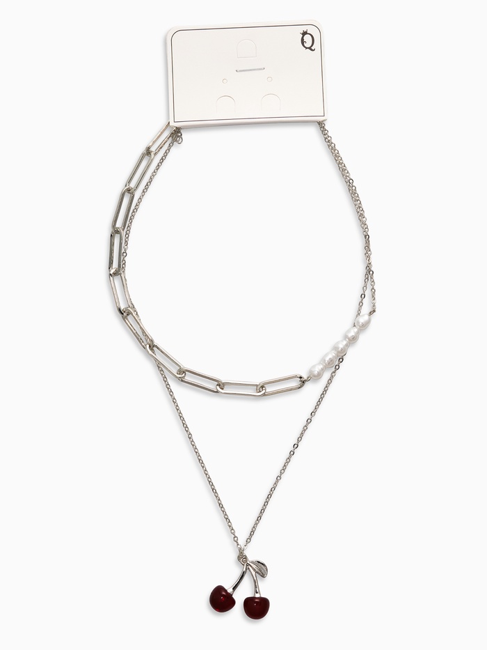 Кулон на цепочке 2 яруса «Вишня», 40 и 50 см, бордовый в серебре