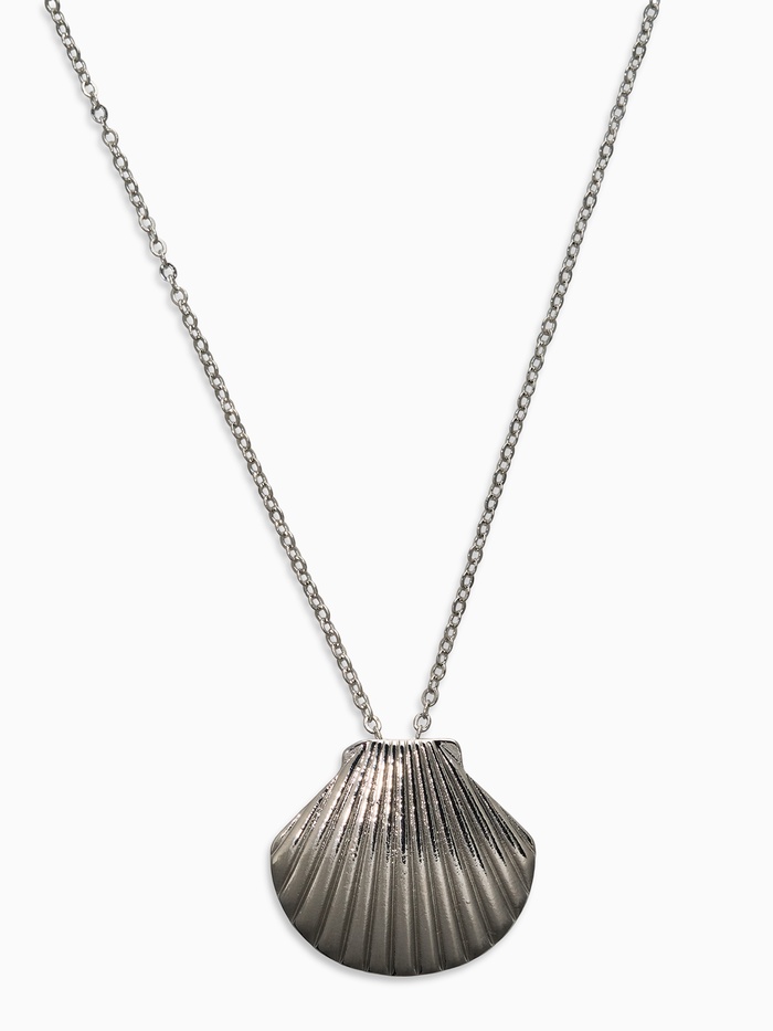 Изготовленное из качественных металлов с нанесением приятного серебристого покрытия, изделие выделяется выразительным дизайном и аккуратностью исполнения. Основанная на цепочке длиной 50 см, раковина занимает почетное место центрального элемента, формируя единую композицию, которая идеально ложится на плечи и шею.