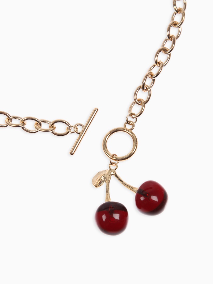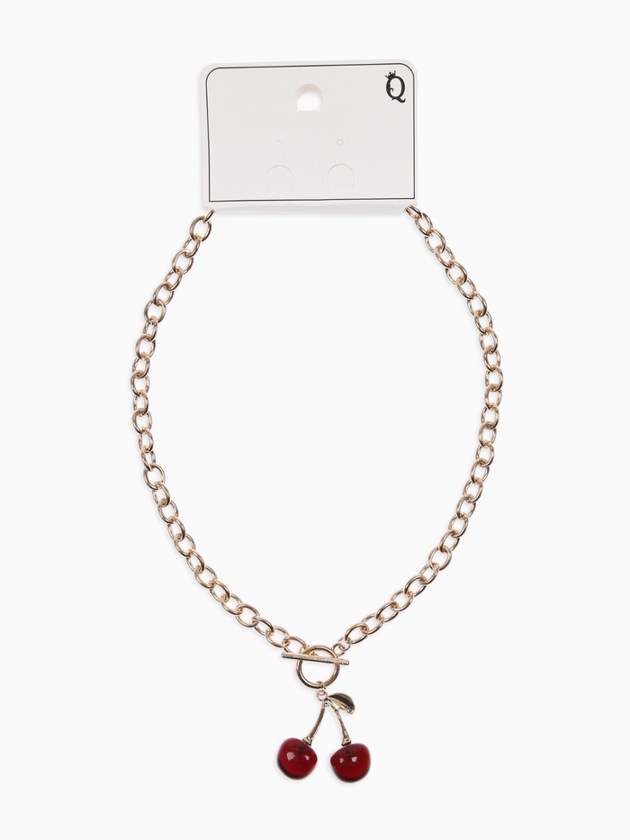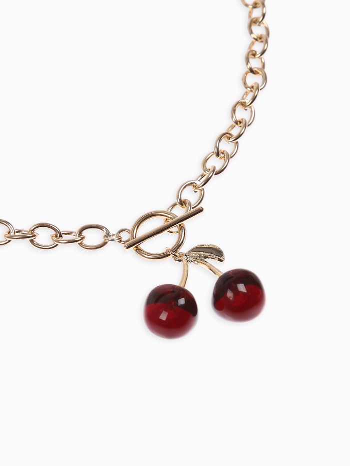 Кулон-цепь крупная «Вишня», красный в золоте 40 см