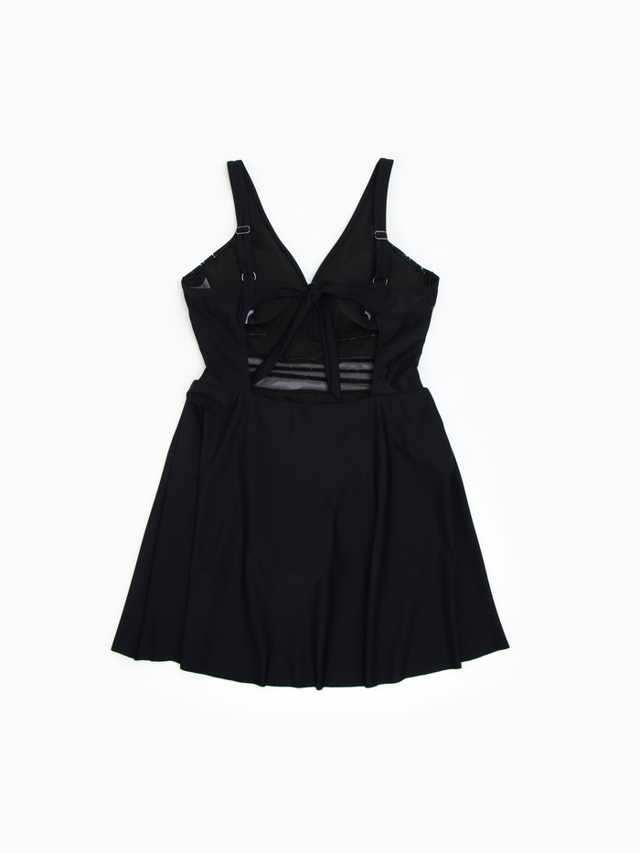 Слитный купальник с юбкой в чёрном цвете — модель для тех, кто хочет чувствовать себя уверенно на пляже, у бассейна или в отпуске и при этом выбирать более закрытый, спокойный силуэт. Такой формат особенно удобен, когда нужен купальник на каждый день отдыха: без лишней вычурности, с понятной посадкой и универсальным цветом, который легко сочетается с пляжной рубашкой, лёгкой накидкой, парео или шляпой.