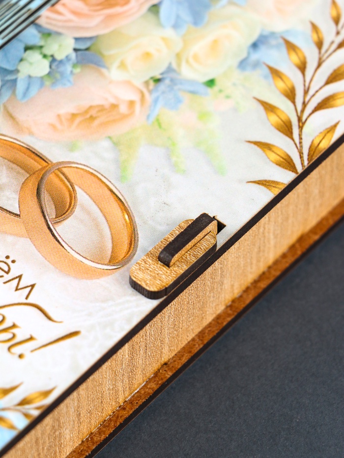 Подарочная шкатулка на свадьбу станет изысканным дополнением к вашему празднику или великолепным подарком для молодожёнов. Этот прямоугольный бокс служит элегантным, но практичным способом хранить не только деньги, но и украшения. Назначение – сохранить важные детали вашего события в одном месте.