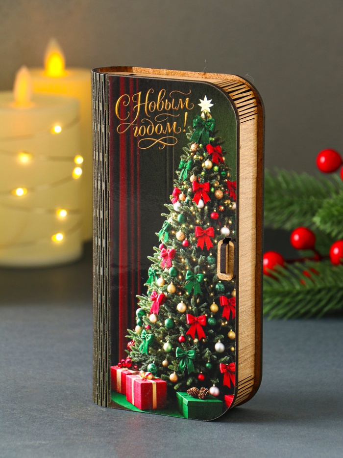 Подарочная купюрница «С Новым годом» станет изысканным сюрпризом для ваших близких и коллег. Эта прямоугольная шкатулка не только красива, но и функциональна: она сохранит в порядке ваши денежные подарки и украшения. Выполненная из качественного ЛХДФ с оригинальным печатным покрытием, она служит стильной деталью интерьера и неотъемлемым атрибутом праздника.