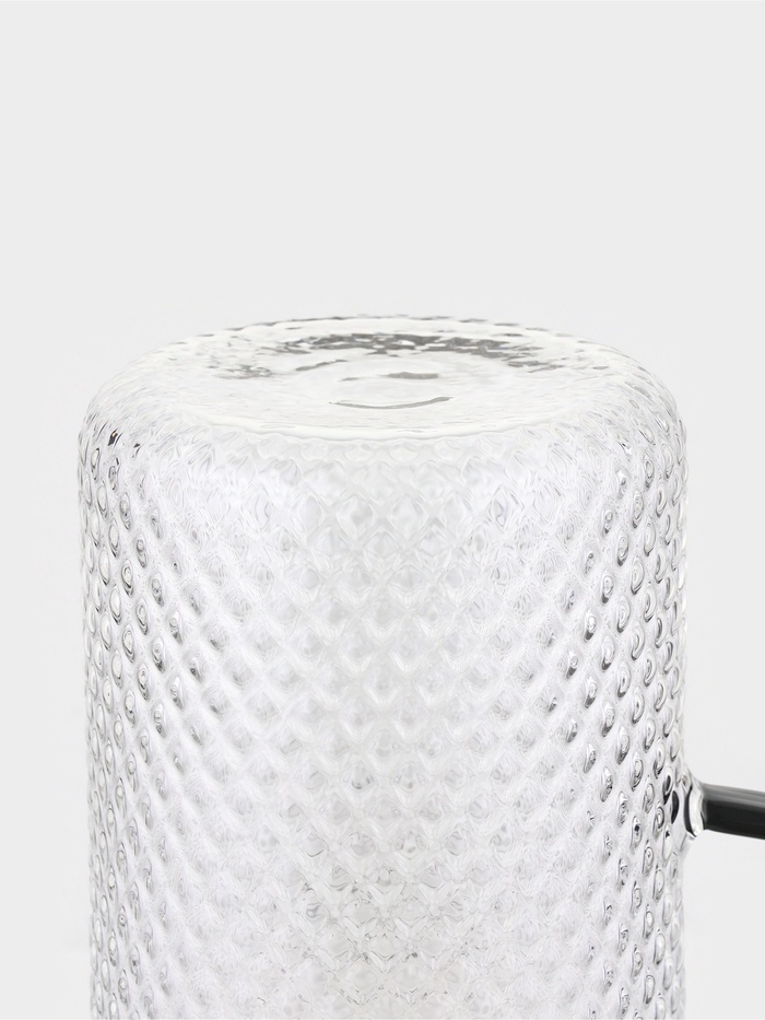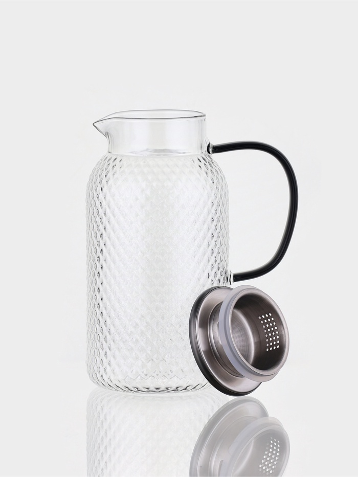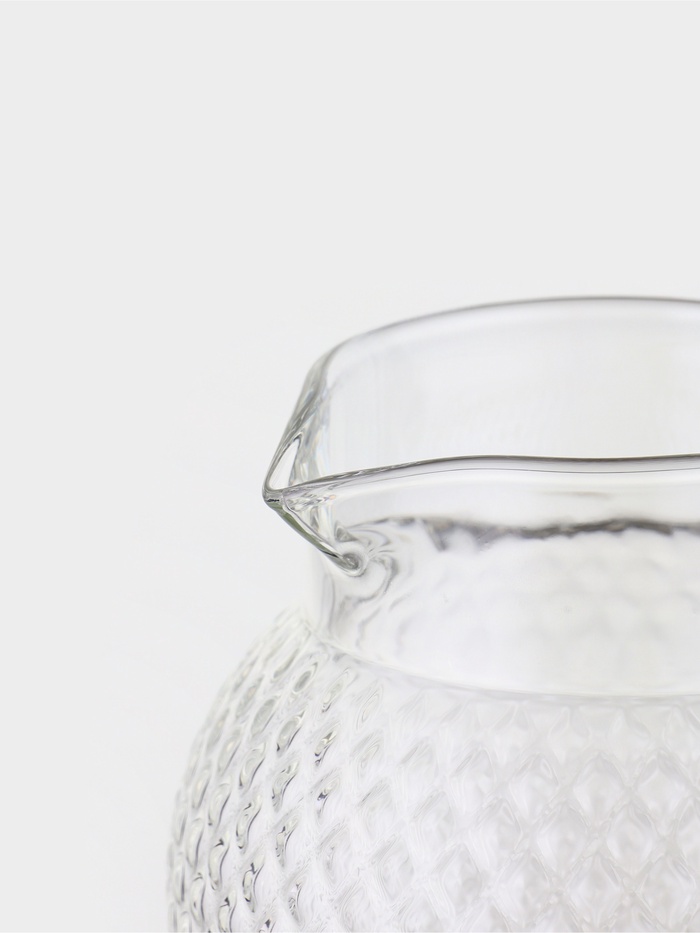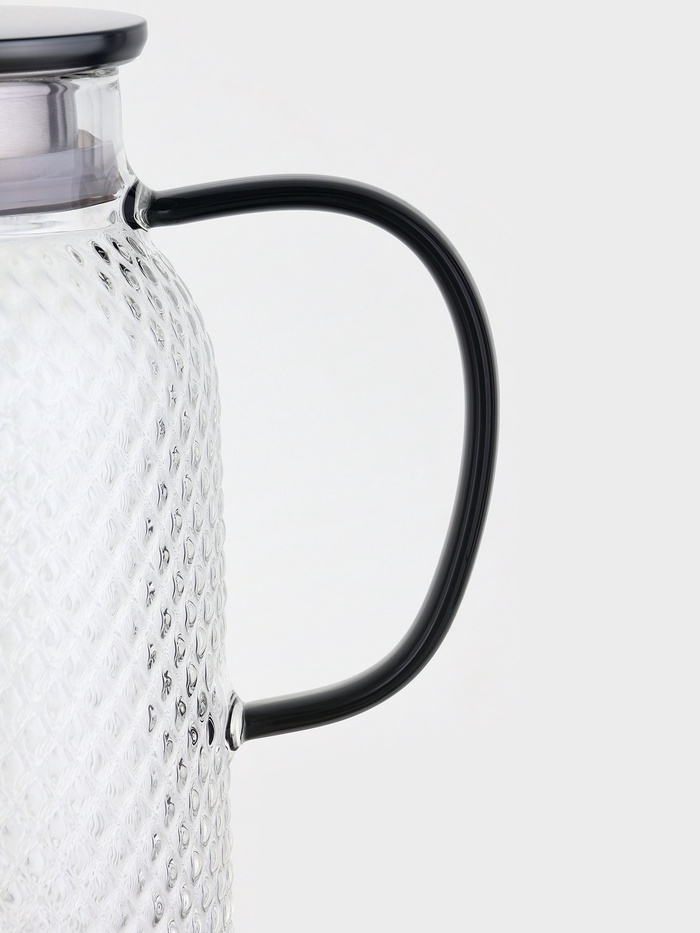 - Прочное стекло и рельефный дизайн: Кувшин изготовлен из толстого прозрачного стекла. Рельефный узор в виде пчелиных сот не только украшает его, но и обеспечивает уверенный захват. Поверхность не скользит в руках.