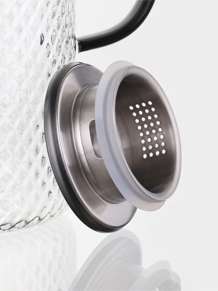 - Эргономичная крышка-сито: Металлическая крышка оснащена встроенным фильтром. Она надежно удерживает листья мяты, кусочки фруктов или ягодные косточки, когда вы наливаете напиток. Это сохраняет чистоту напитка в стакане.