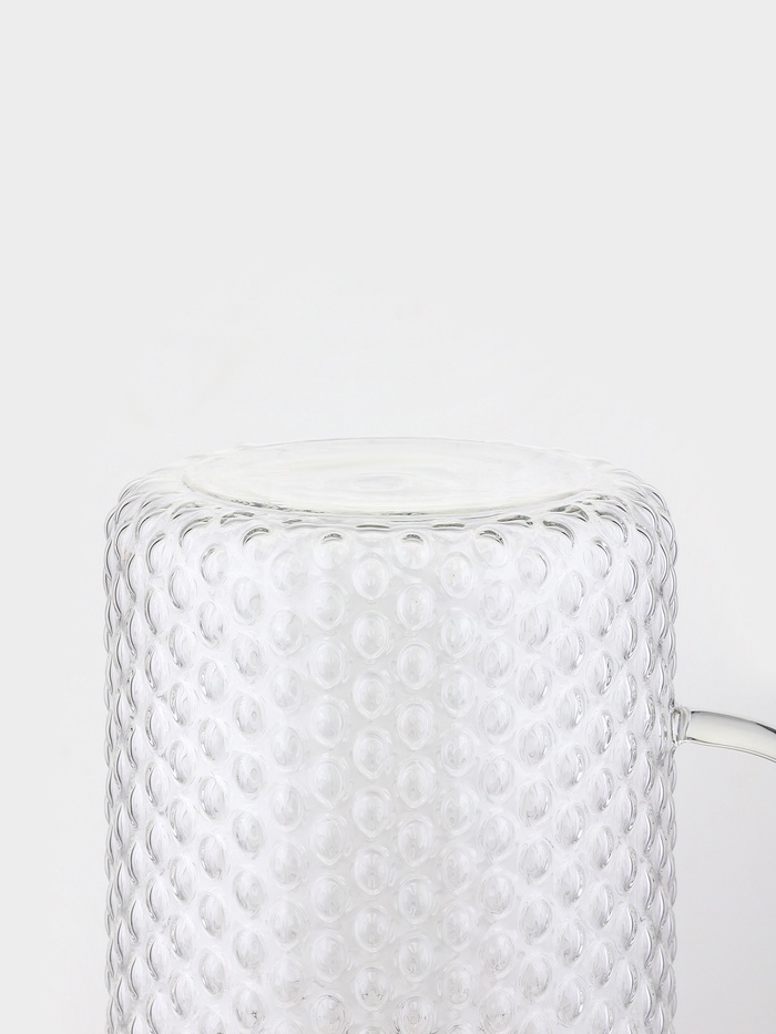 - Прочное стекло и рельеф: Стеклянный корпус демонстрирует цвет и прозрачность напитка, а рельефная текстура «дольки» обеспечивает уверенный и удобный хват, чтобы кувшин не выскальзывал из рук.