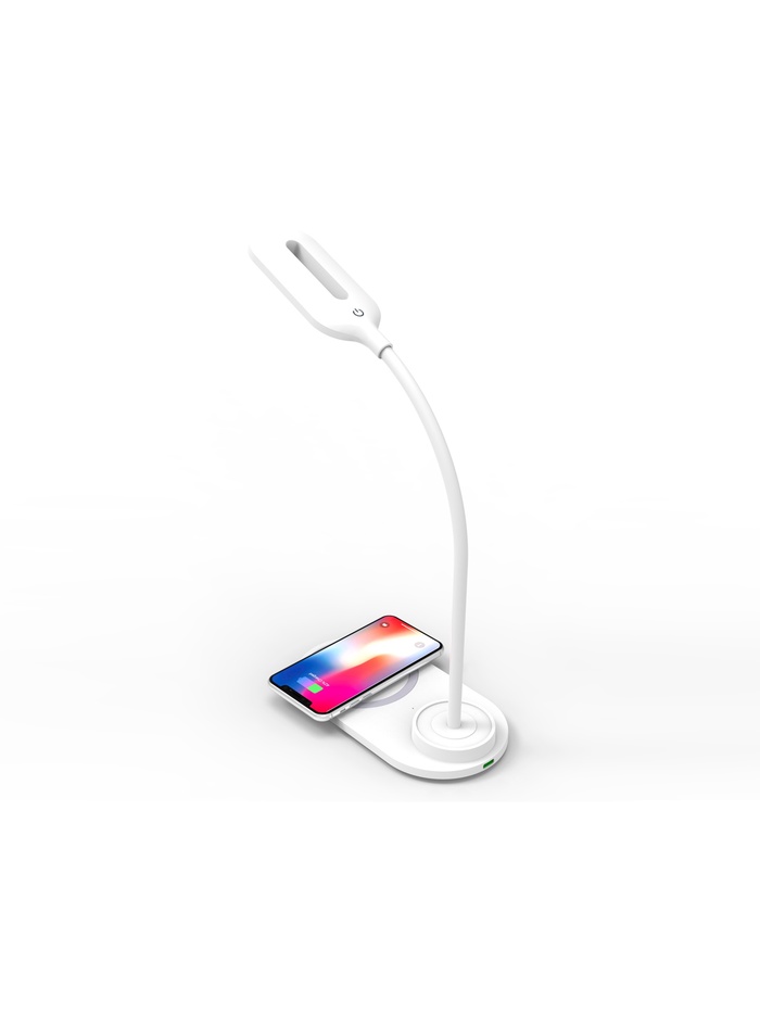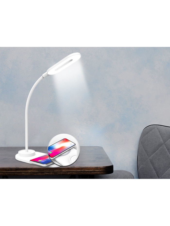 Лампа настольная DE588, LED, 3Вт, 3000-6400K, беспроводная зарядка, 16х8,5х28 см, белый
