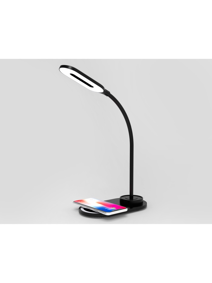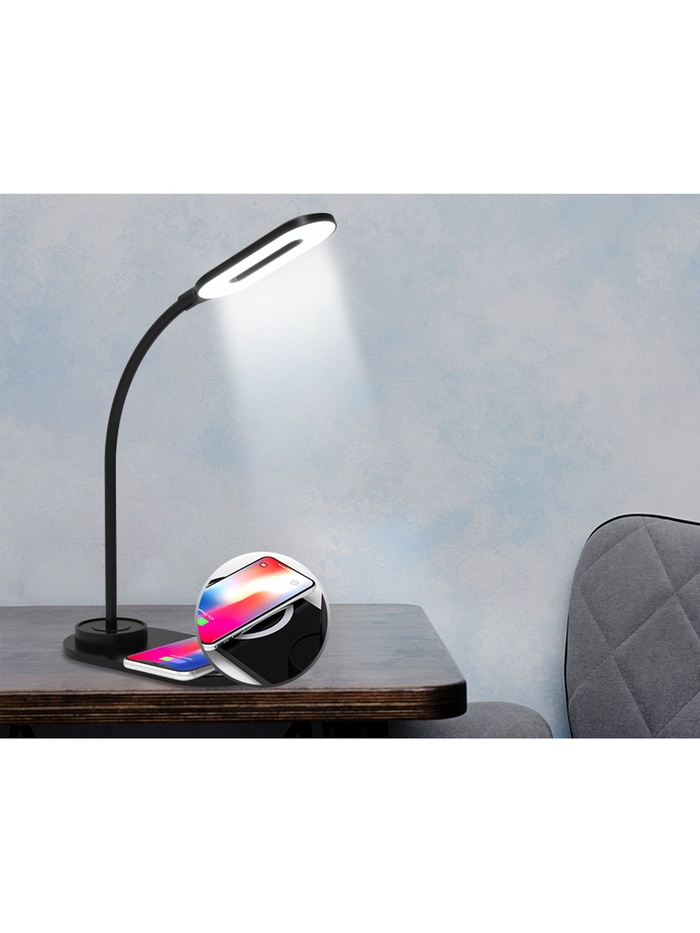 Лампа настольная DE589, LED, 3Вт, 3000-6400K, беспроводная зарядка, 16х8,5х28 см, чёрный