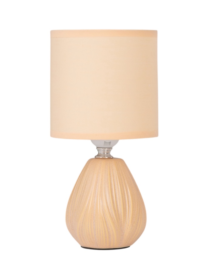 Тёплый кремовый оттенок и мягкие линии создают ощущение уюта ещё до включения света. Настольная лампа с компактным основанием и абажуром конусной формы формирует деликатное освещение, которое не перегружает пространство и гармонично дополняет интерьер. Благодаря спокойной цветовой гамме она легко вписывается в спальню, гостиную или рабочую зону.