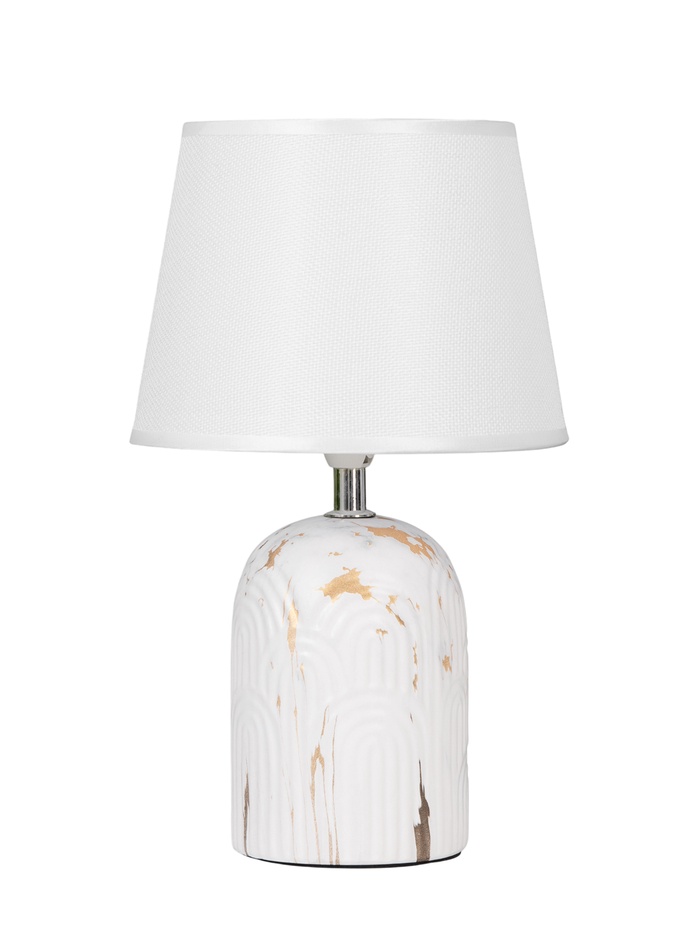 Настольная лампа с бело-золотым оформлением прекрасно сочетает в себе практичность и стиль. Элегантное основание из керамики и светлый текстильный абажур создают мягкое, приятное освещение, которое помогает настроить атмосферу уюта в спальне, кабинете или гостиной. Свет направляется вверх через трапециевидный плафон, обеспечивая комфортную работу или расслабленное чтение без резких теней и бликов. Благодаря классическому дизайну лампа вписывается как в современные, так и в традиционные интерьеры, дополняя обстановку изысканными акцентами.