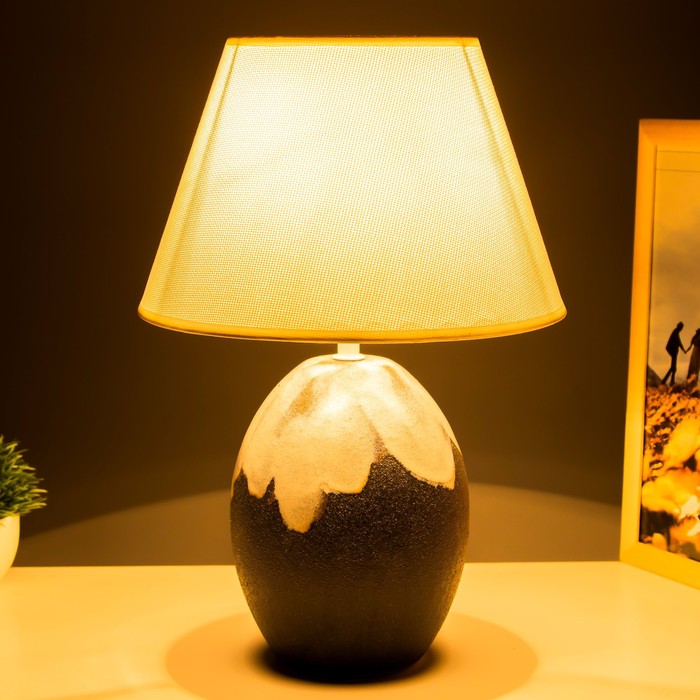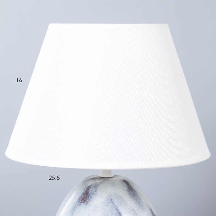 Керамическое основание отличается устойчивостью и аккуратной фактурой. Материал хорошо держит форму и сохраняет внешний вид при регулярном использовании. Текстильный абажур смягчает световой поток, делая его комфортным для глаз.