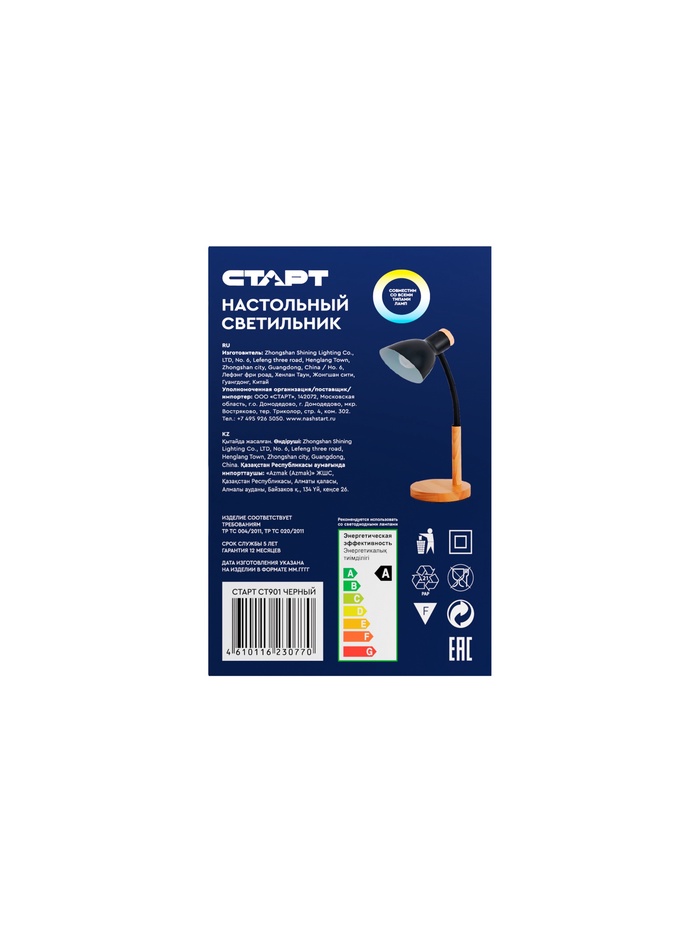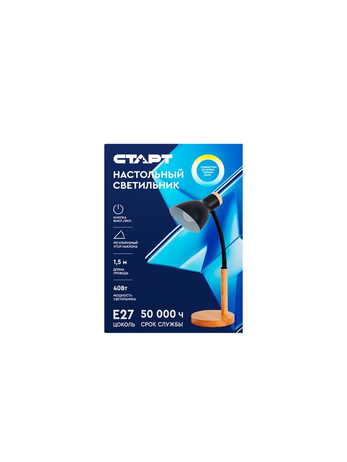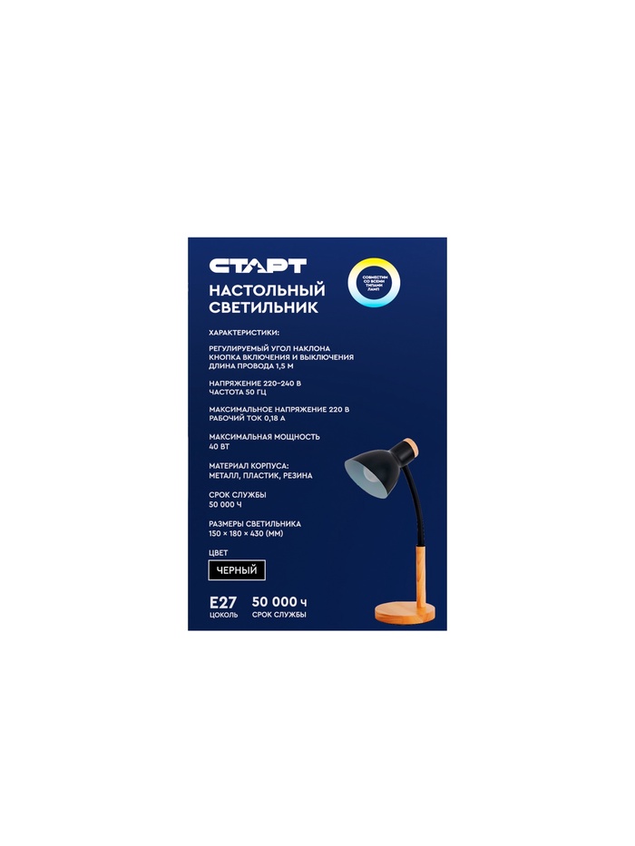 Технические характеристики Лампа настольная СТАРТ CT901, Е27, 40 Вт, , 15×18×43 см, чёрная