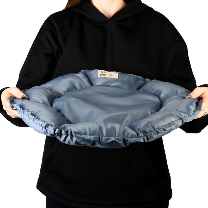 Стяжка на шнурке позволяет регулировать диаметр лежанки. А если распустить стяжку полностью, то лежанка превратится в матрасик.