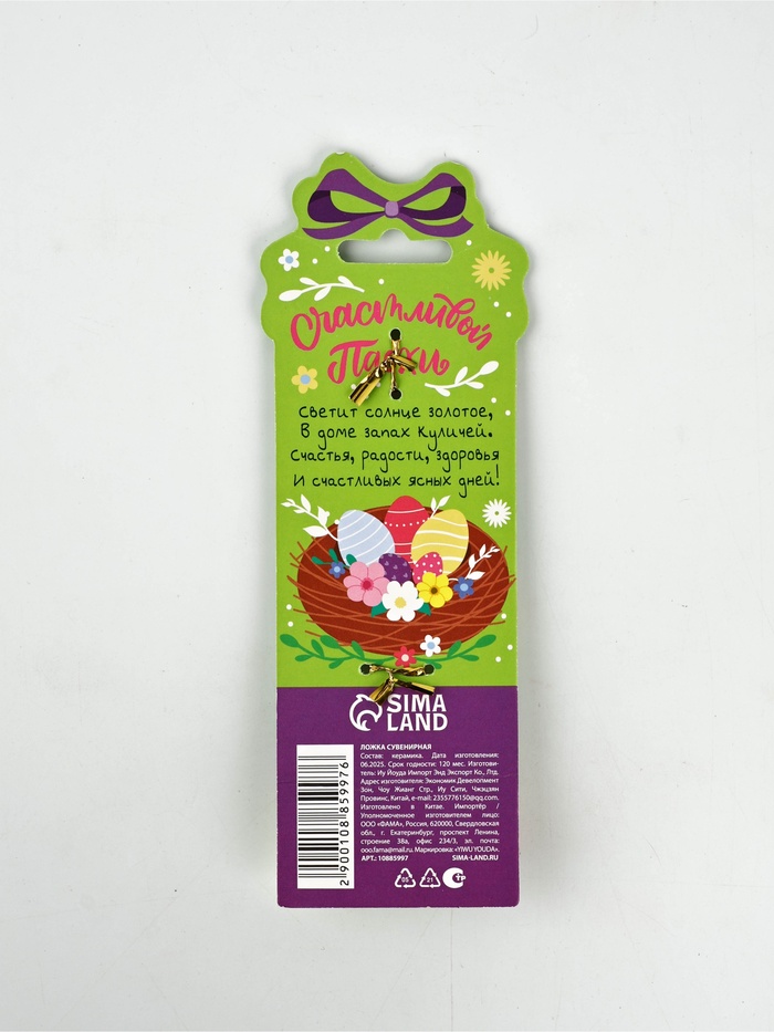Ложка сувенирная пасхальная «Счастья, мира и добра», h=13 см