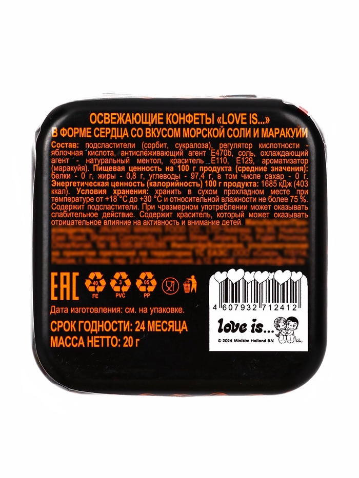 Освежающие конфеты Love is, в форме сердца, со вкусом морской соли и маракуйи, 20 г