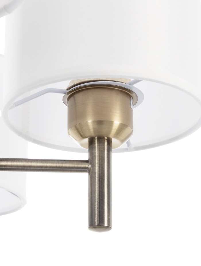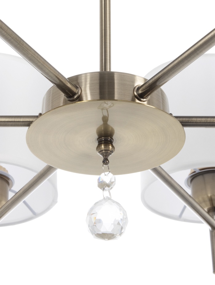 Подвесная люстра в бронзовом исполнении с шестью абажурами — выразительное решение для интерьеров в стиле неоклассика. Металлическое основание в тёплом оттенке бронзы гармонично сочетается с белыми текстильными плафонами цилиндрической формы, создавая мягкий, рассеянный свет и уютную атмосферу. Подвес на цепи придаёт конструкции визуальную лёгкость и позволяет органично вписать модель в помещения с различной высотой потолков.