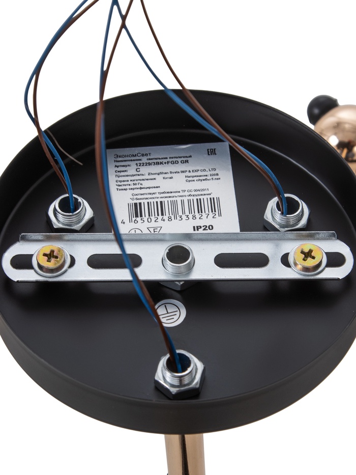 Технические характеристики Люстра 12229/3, 2хE27, 60 Вт, чёрный/золото