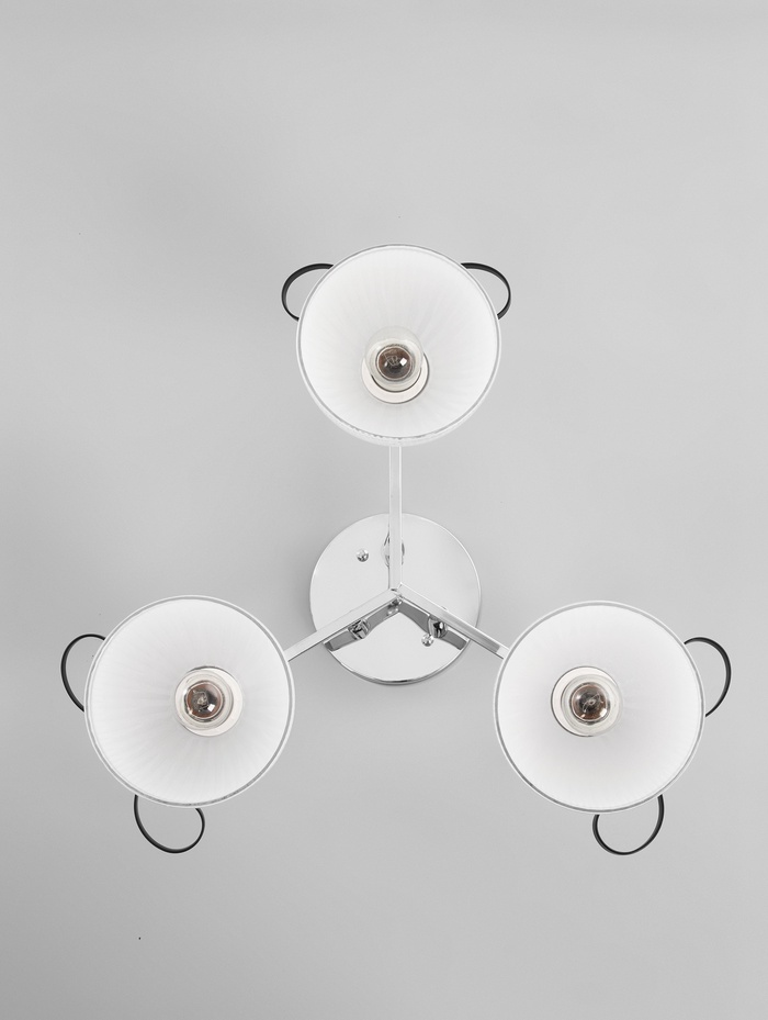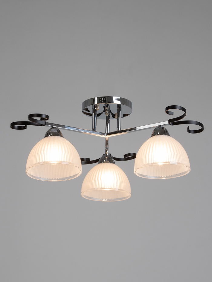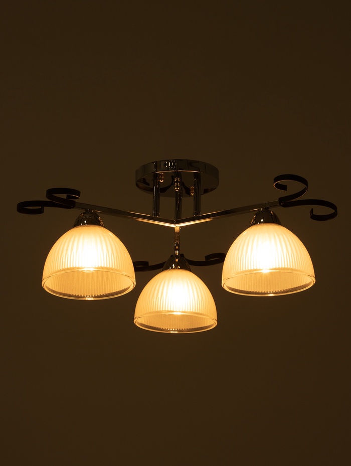 - Классическая форма и универсальность: Три конусных стеклянных плафона равномерно распределяют свет по помещению. Чистый дизайн без лишних деталей легко впишется в интерьер гостиной или спальни. Люстра не перегружает пространство.