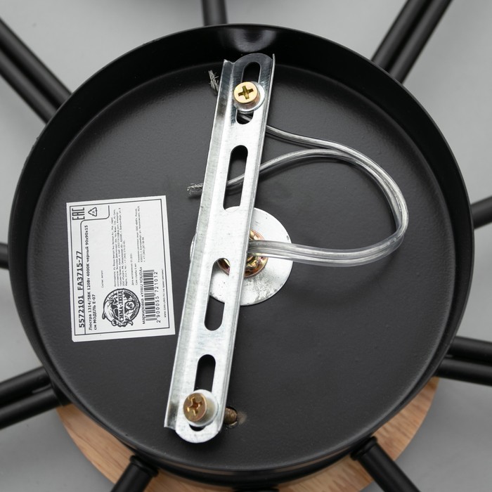 - Абсолютно черная геометрия: Круглый черный металлический корпус и такие же черные рассеиватели образуют цельный силуэт. Люстра визуально уменьшает высоту потолка, делая пространство камерным и стильным.