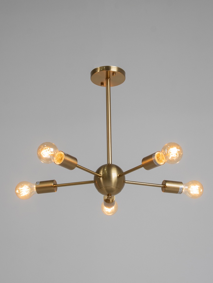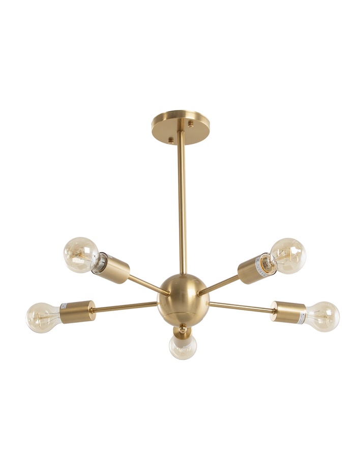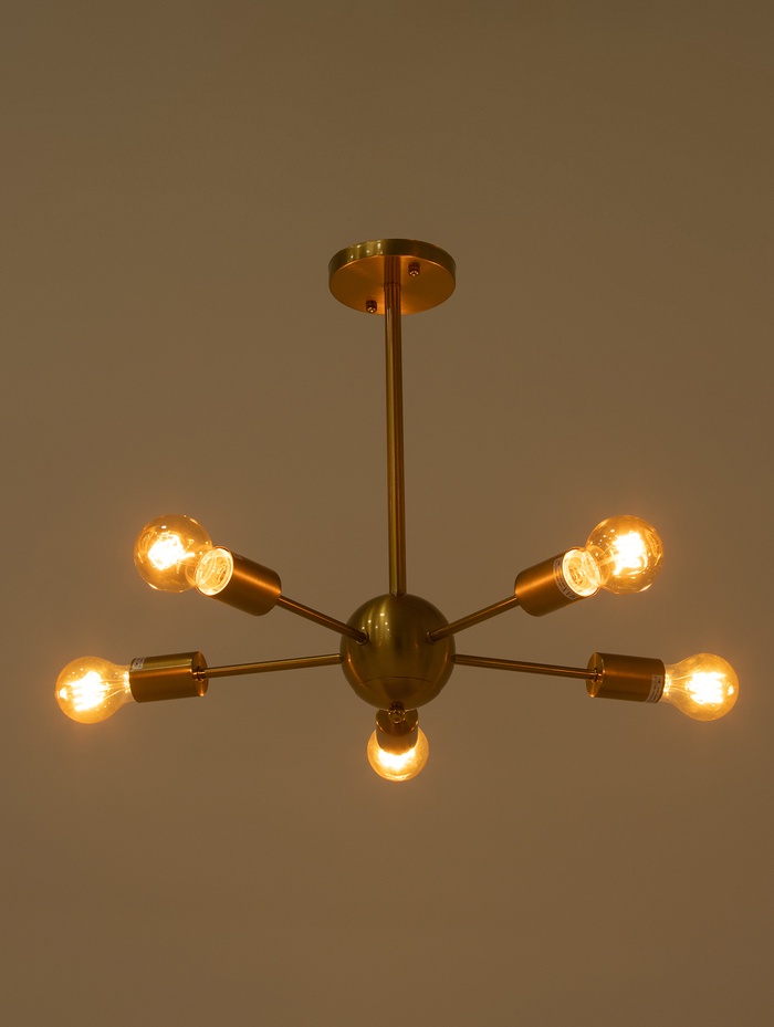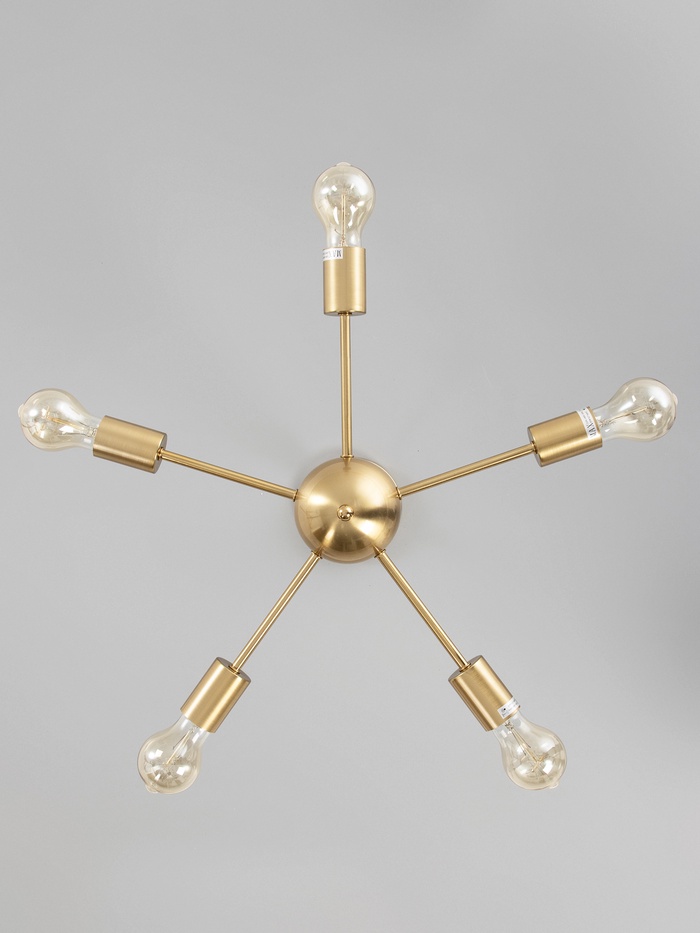 Золотое сияние для вашего интерьера! Люстра на 5 ламп с золотым покрытием — это стильный источник света, создающий уютную и торжественную атмосферу. Конструкция без плафонов подчеркивает геометрию светильника и обеспечивает яркое, ничем не сдерживаемое освещение.