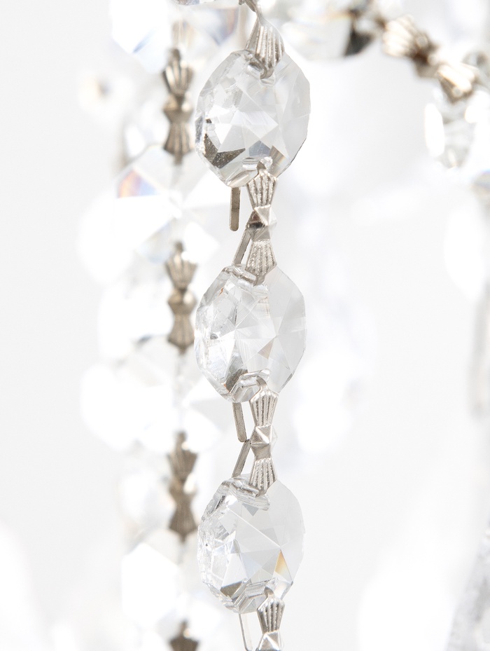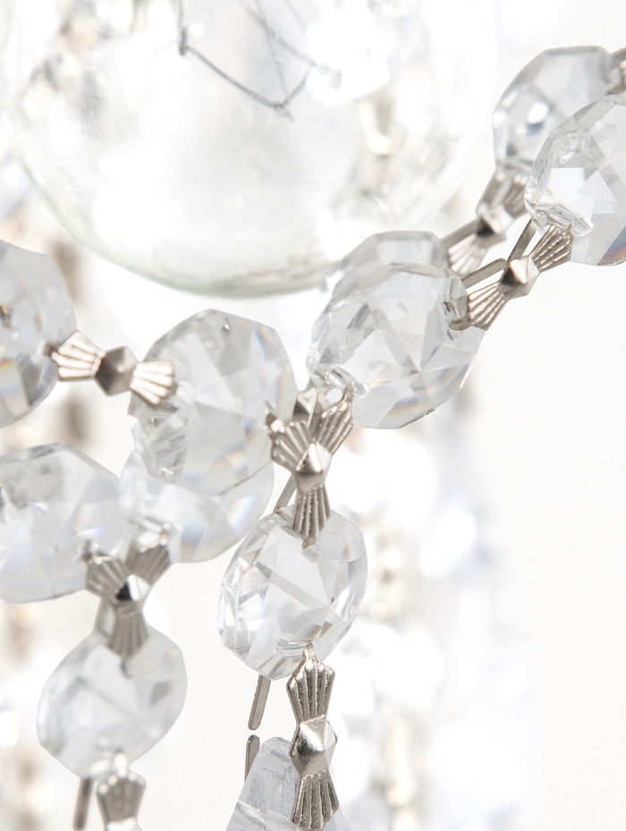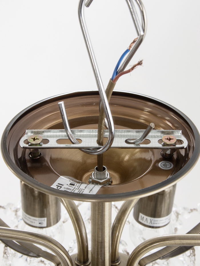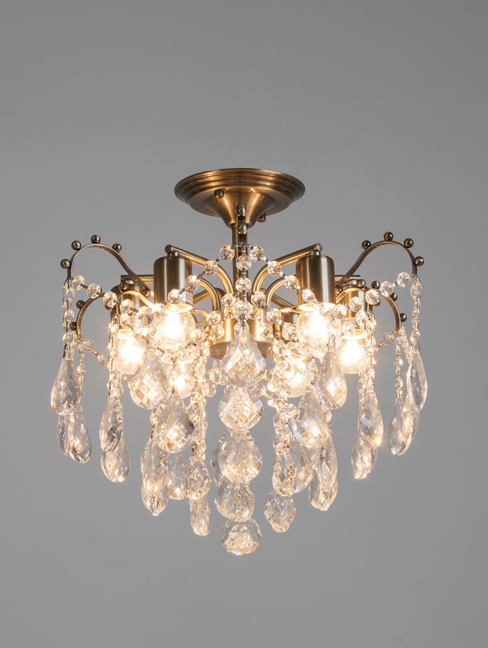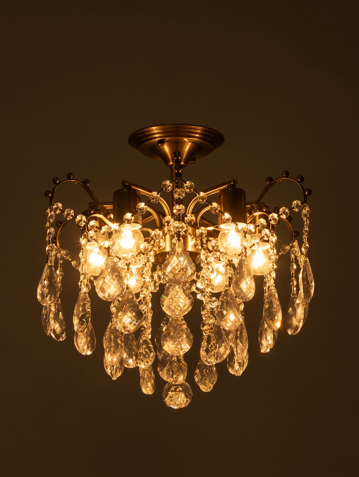 - Хрустальные элементы: Рассеиватель выполнен из хрусталя, который мягко преломляет свет и создаёт игру бликов. Это не просто освещение — это оформление пространства.