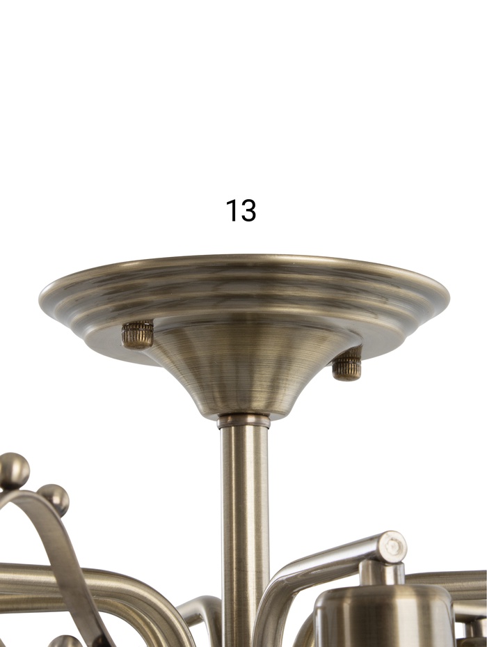 - Универсальное крепление: Монтаж на планку, подвес на штанге — конструкция подходит даже для натяжных потолков, если использовать светодиодные лампы. Высота люстры — 40 см, размеры основания — 41,5×41,5 см, что делает её уместной в помещениях среднего и большого размера.