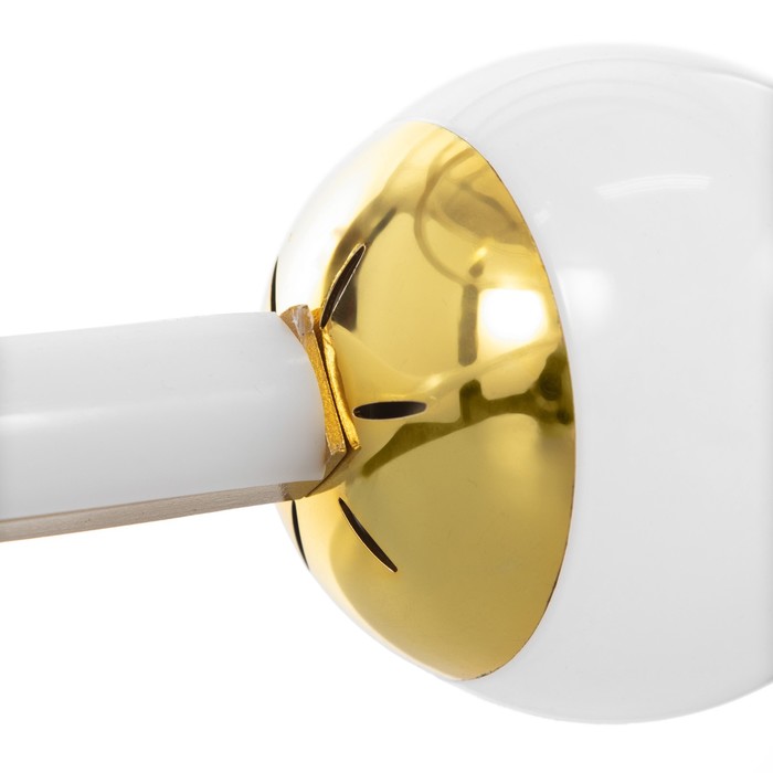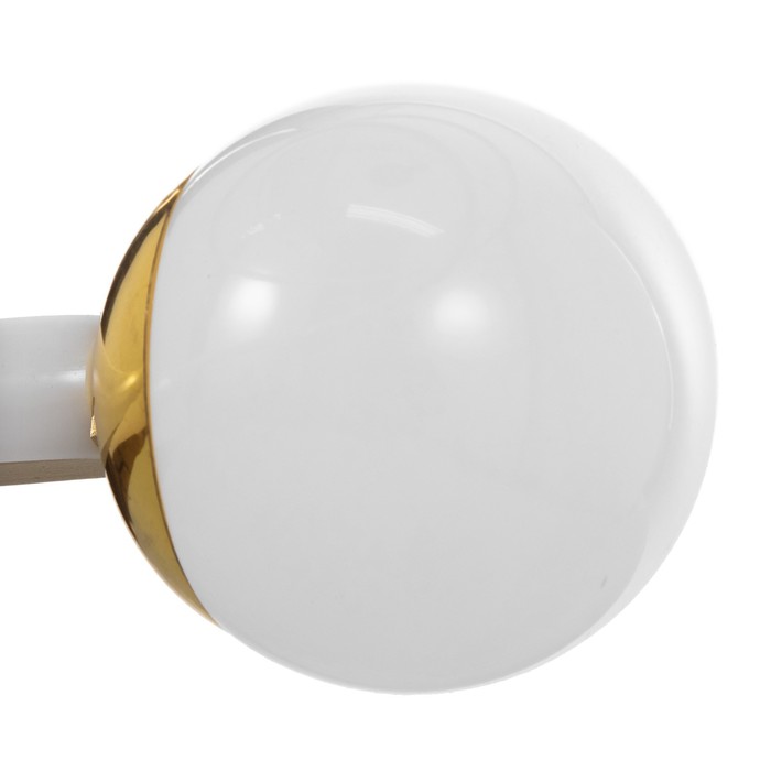 - Форма «кольцо» с центральным шаром: Основание из металла в золотистом оттенке окружает внутренний рассеиватель. Такая композиция добавляет объём пространству и работает как элемент декора, даже когда свет выключен.