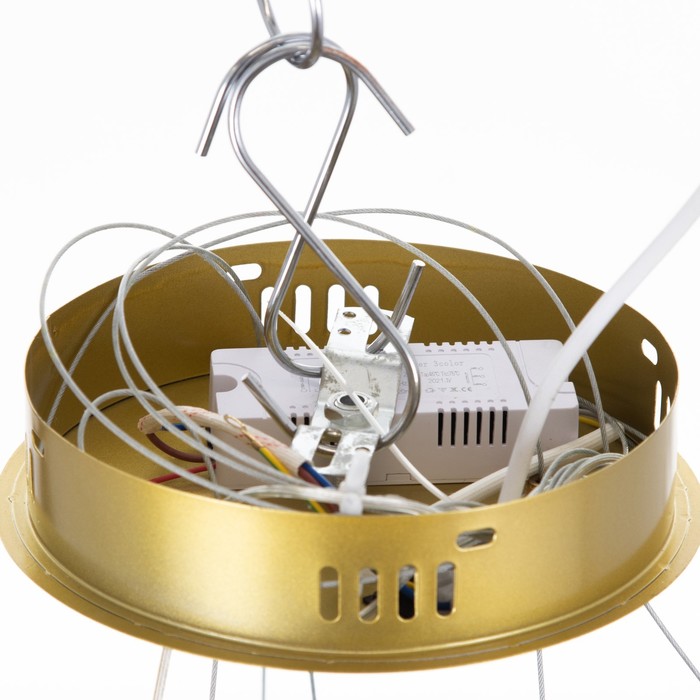 Где будет уместен: Этот светильник подойдёт для гостиной, кухни, спальни, прихожей или интерьера кафе и ресторана. Золотистый металл сочетается с бежевыми, серыми и белыми стенами, добавляя интерьеру благородства. Управление — с пульта ДУ: режимы, яркость, включение/выключение. Крепится на планку, подходит для натяжных потолков. Степень защиты IP20 — для сухих помещений. Готов к работе сразу после установки — стиль, комфорт и функциональность в одном решении.