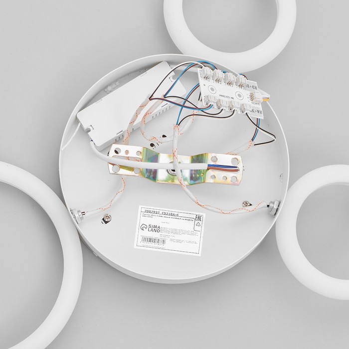 Светодиодная люстра с пультом управления и подходит для повседневного использования в жилых интерьерах. Плоская конструкция высотой всего 4,5 см позволяет установить её в помещениях с низкими потолками, сохраняя визуальную лёгкость пространства.