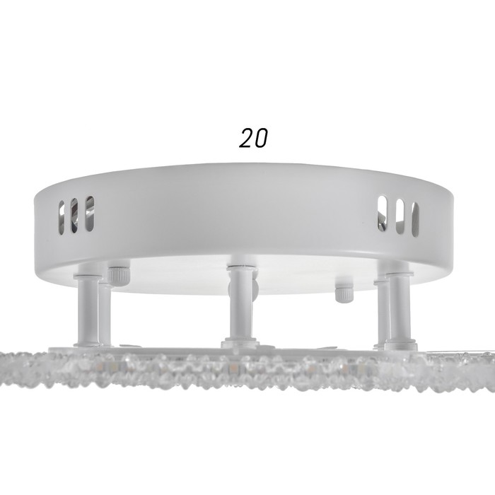 Люстра оснащена пультом дистанционного управления, что упрощает настройку параметров освещения. Крепление на планку обеспечивает надёжный монтаж, а совместимость с натяжными потолками делает модель универсальной для современных интерьеров.