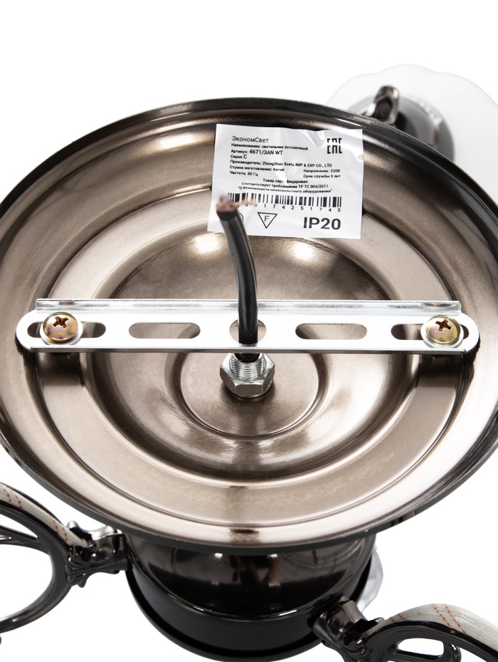 Люстра ЭкономСвет 4671/3AN, 3×40 Вт, E27, 55×55×33 см, цвет чёрный хром