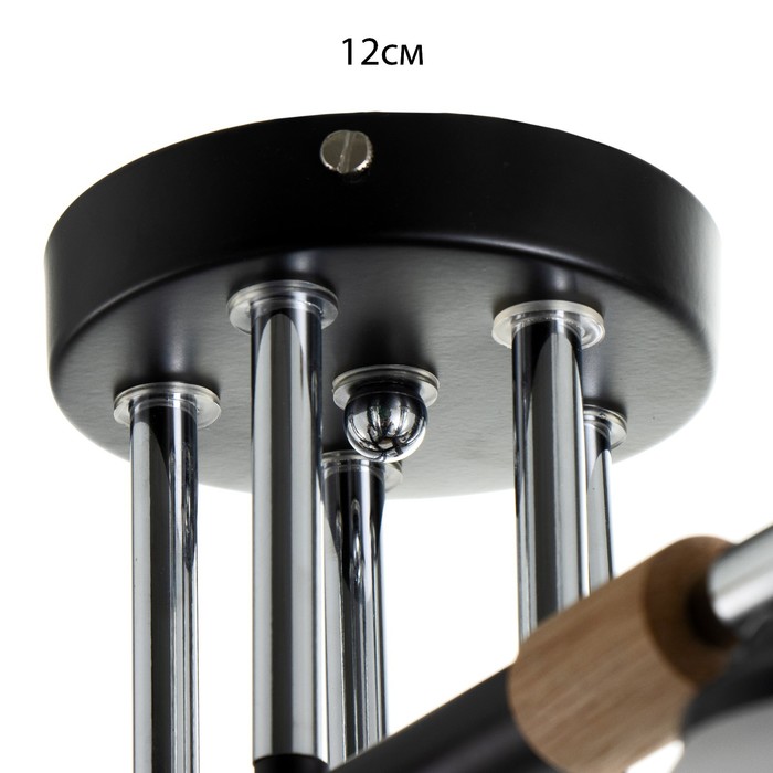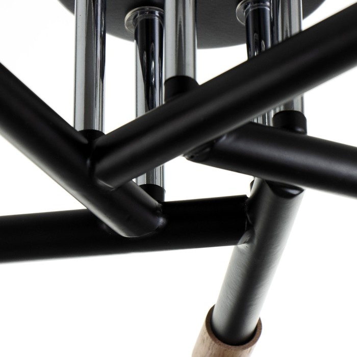 - Монохромная палитра с прозрачными акцентами: Черное металлическое основание в сочетании с прозрачными плафонами создает контрастный образ. Дизайн соответствует стилям лофт, модерн и современный.