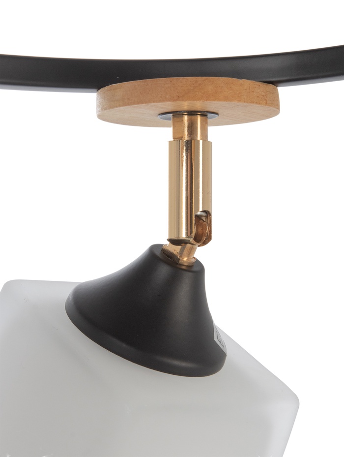 Потолочная люстра с чёрным металлическим основанием и тремя аккуратно оформленными стеклянными плафонами сочетает в себе современный стиль и функциональность. Чёрный корпус создаёт выразительный контраст с прозрачными рассеивателями, делая светильник заметным, но гармоничным элементом интерьера. Такая модель прекрасно подходит для помещений с разным дизайном — от строгого современного до уютного минимализма, подчёркивая общую атмосферу комнаты.