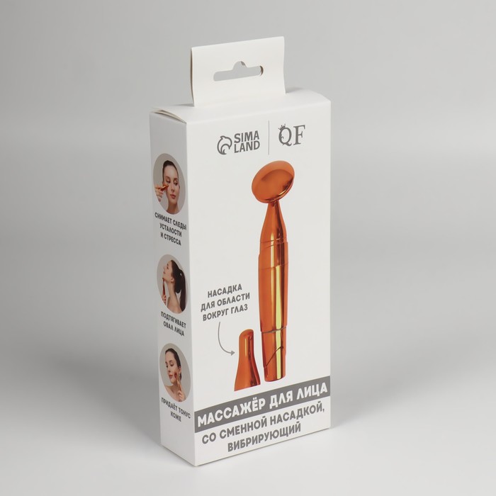 Массажёр для лица, 3,4 × 15 см, две насадки, цвет медный