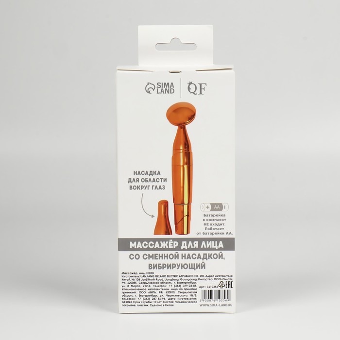 Технические характеристики Массажёр для лица, 3,4 × 15 см, две насадки, цвет медный