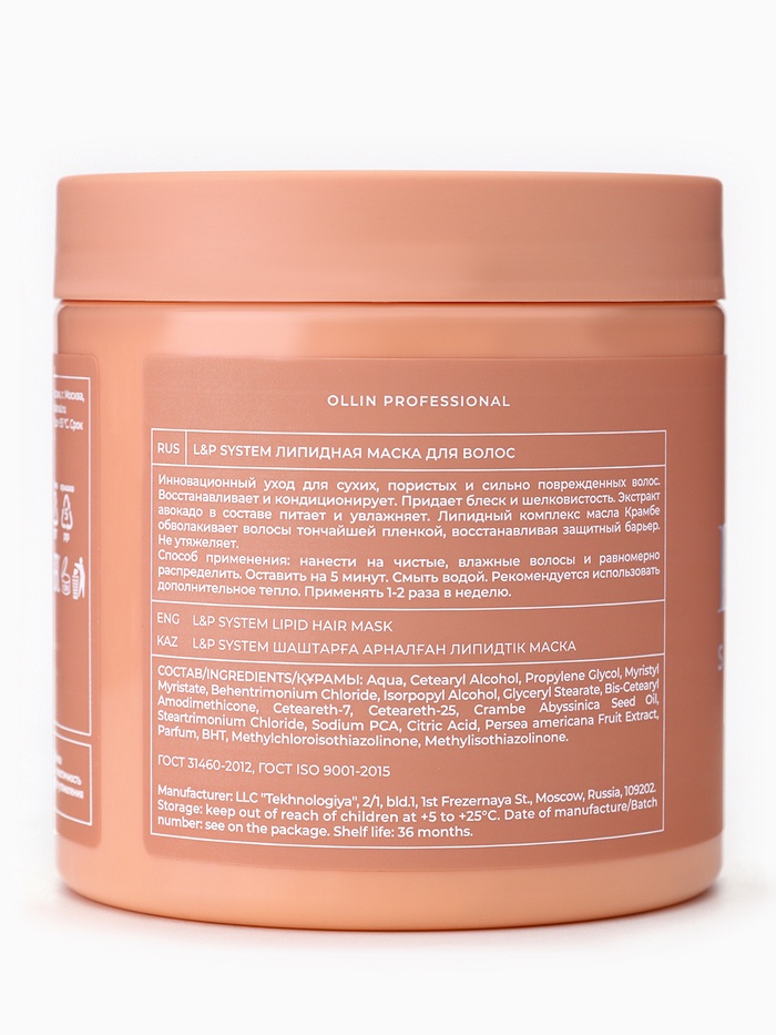 Технические характеристики Маска для волос липидная L&P SYSTEM OLLIN PROFESSIONAL, глубокое восстановление, 500 мл