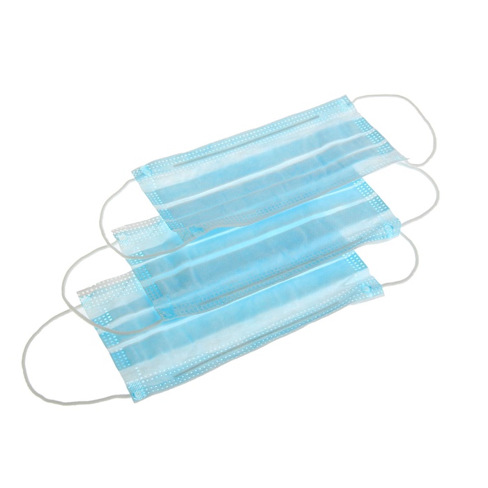 Маска медицинская, 3-х слойная с носовым фиксатором, голубая, 50 шт.