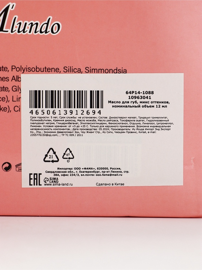 Масло для губ Mlundo, 12 мл, микс оттенков