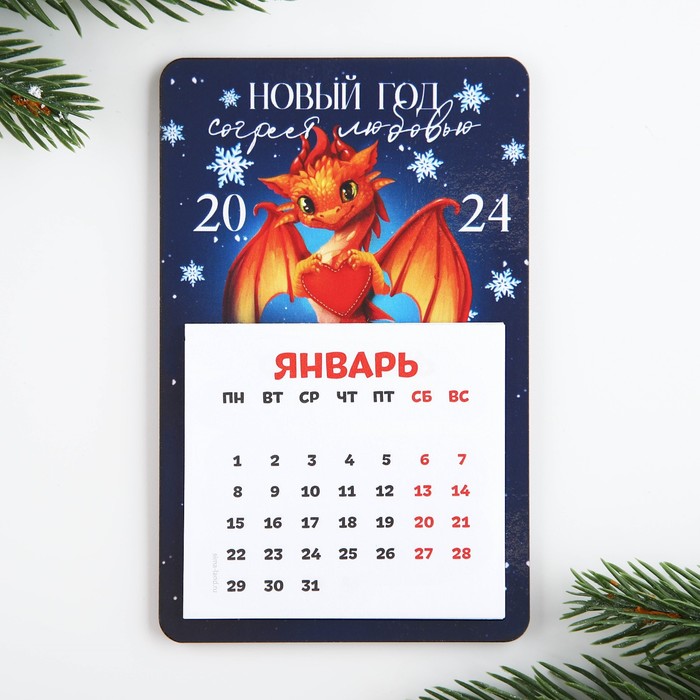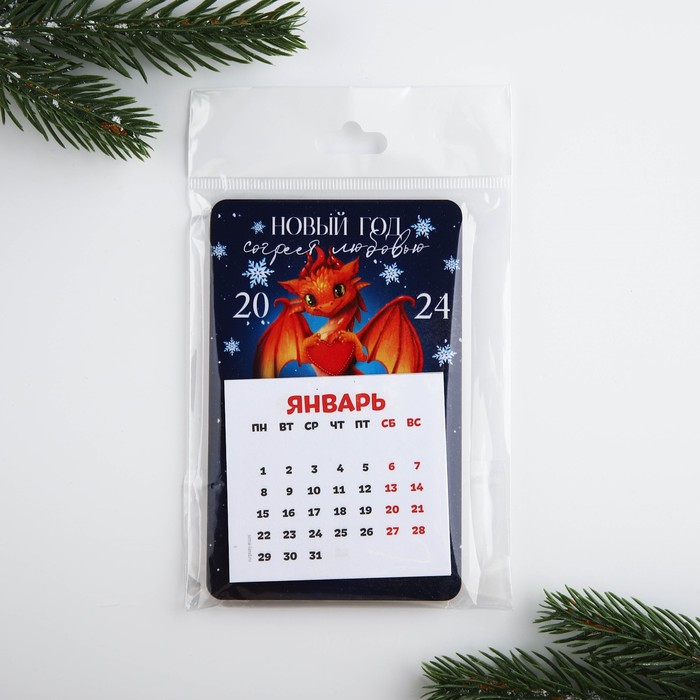 Магнит новогодний дерево с календарем «Новый год: Согреет любовью», 7 х 11 см