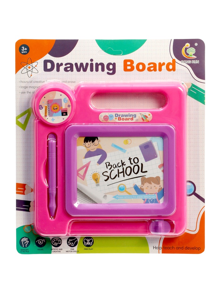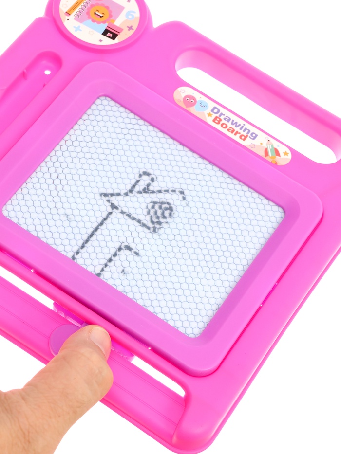 Яркий розовый цвет делает доску привлекательной, а лёгкая конструкция позволяет удобно держать её в руках или использовать на столе. Благодаря магнитному стилусу ребёнок учится правильно направлять руку, развивает моторику, внимание и воображение.