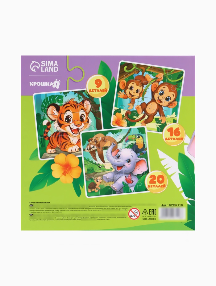Технические характеристики Магнитные пазлы для малышей «Зверята», книга 3 в 1, Крошка Я