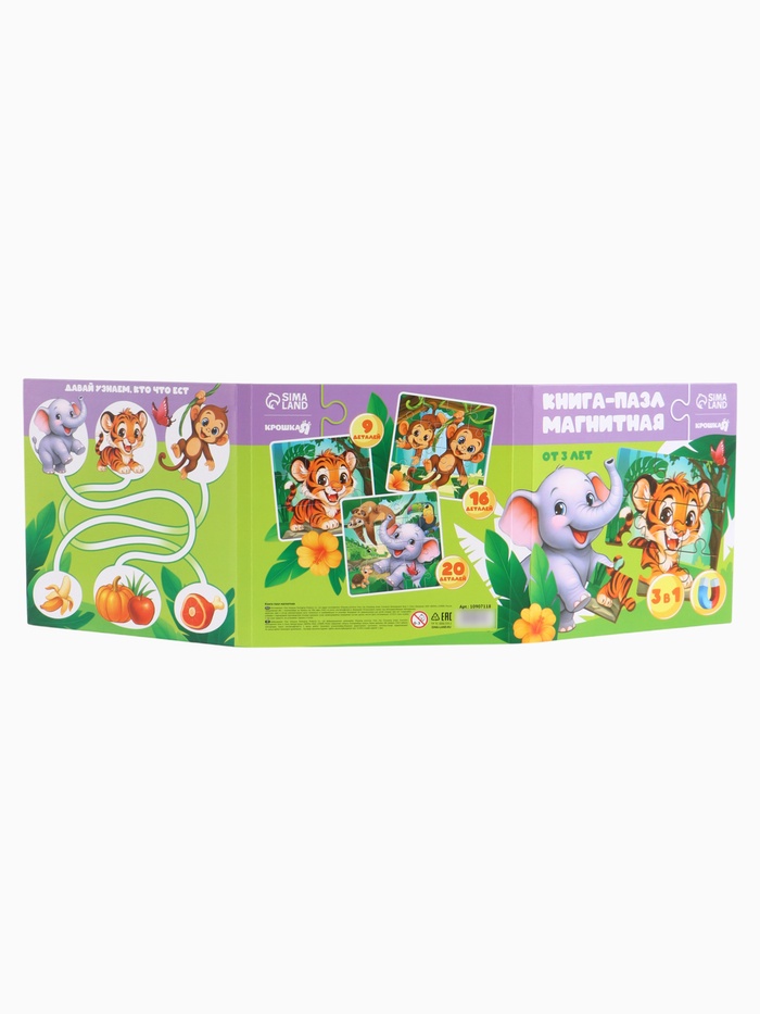 Магнитные пазлы для малышей «Зверята», книга 3 в 1, Крошка Я