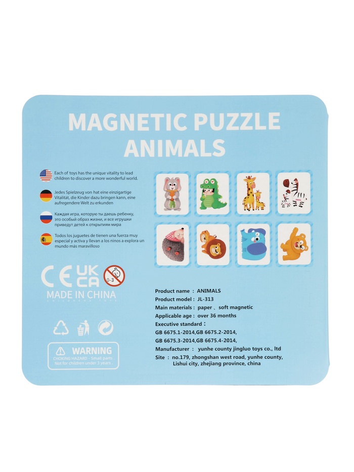 Магнитный пазл-набор «:Животные» знакомит ребёнка с миром животных через игру и творчество. Внутри — раскладная книга-сцена с зелёной полянкой и набором фигурок, которые малыш собирает по частям и размещает в любом порядке. Игровое поле стимулирует придумывать собственные истории, а разные персонажи помогают изучать внешний вид животных и отличать их друг от друга.