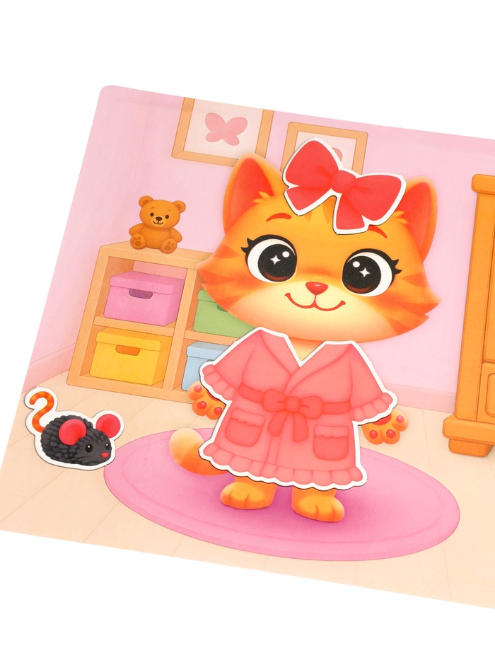 «Весёлые друзья» — это игровой магнитный набор, в котором ребёнок может наряжать пушистых героев, менять им одежду и придумывать свои истории. В комплект входит поле с комнатой и два милых персонажа — котёнок и щенок. Яркие детали, аксессуары и одежда превращают игру в увлекательное творчество, которое развивает воображение и мелкую моторику.