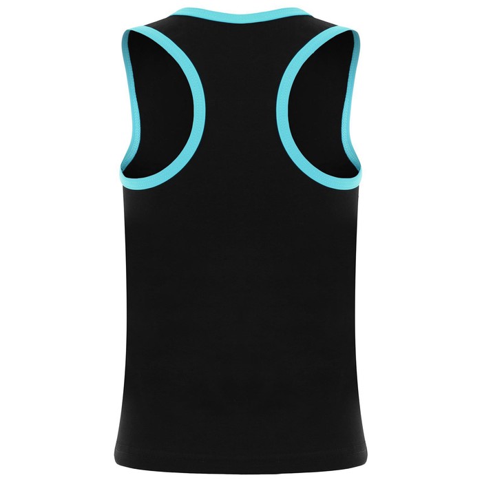 Майка-борцовка с цветной окантовкой, цвет чёрный/голубой, размер 32