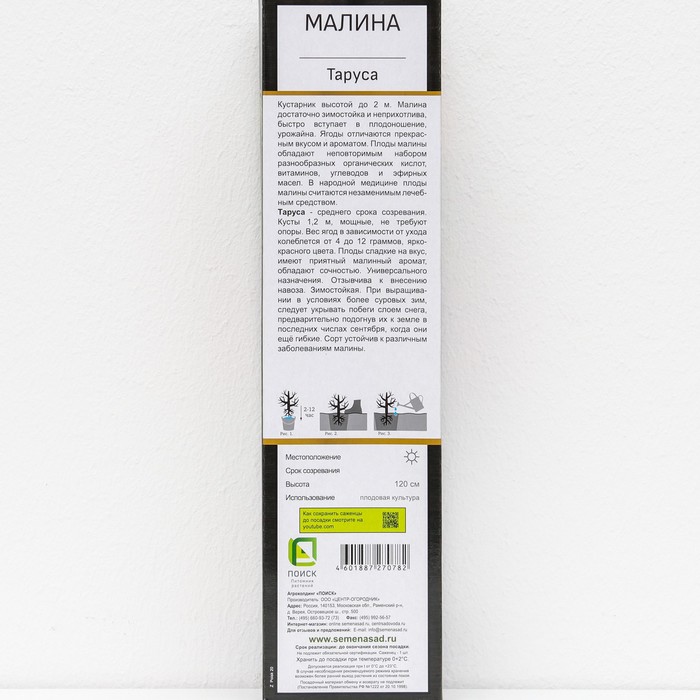 Малина перспективные сорта (штамбовый тип куста) "Таруса" 1 шт, туба, Весна 2026