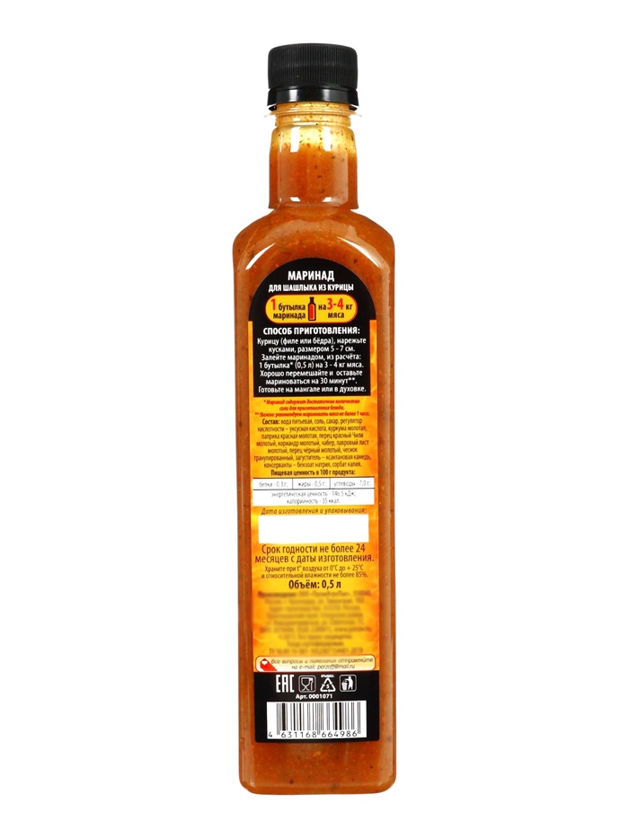 Технические характеристики Маринад для шашлыка из КУРИЦЫ 0,5л/8шт./уп.