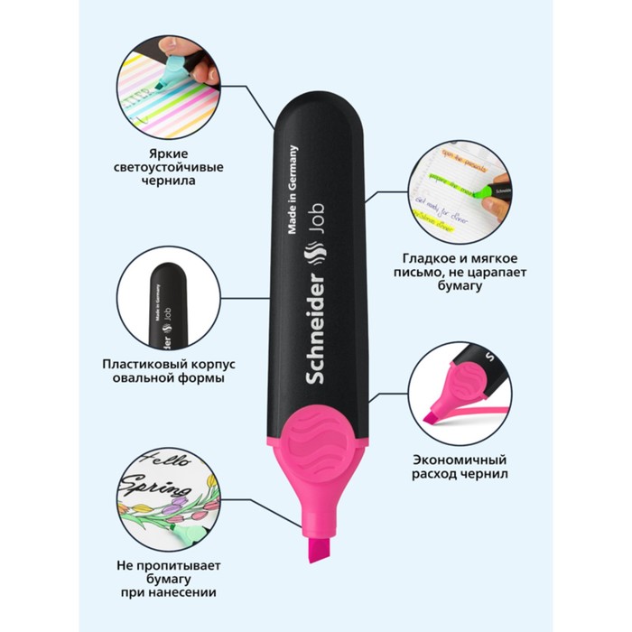 Технические характеристики Маркер текстовыделитель Schneider Job, 1.0-5.0 мм, чернила на водной основе, розовый