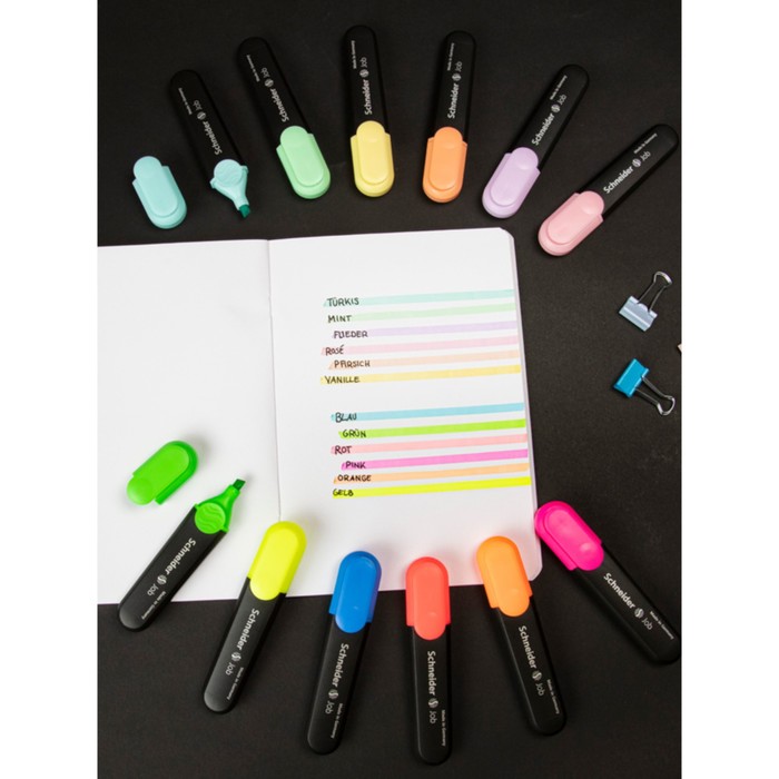 Скошенный наконечник позволяет проводить линии шириной 1-2 или 5 мм. Светостойкие чернила яркого цвета для самого важного в тексте. Письменные принадлежности Schneider разрабатываются и производятся только в Германии, их отличают функциональный дизайн, безупречное качество, надежность и экологичность.