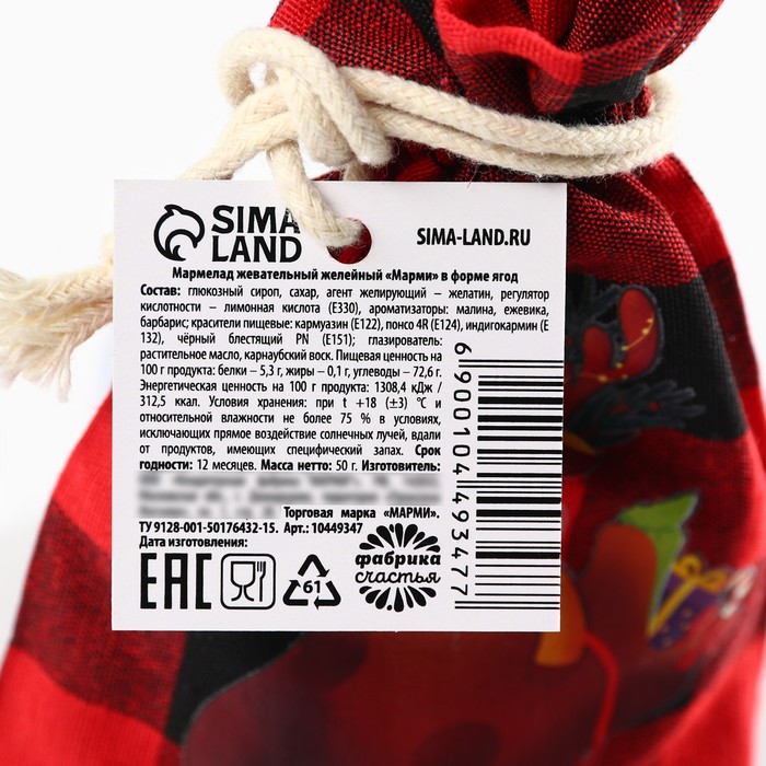 Мармелад в мешке «Счастья и тепла», в виде ягод, 50 г